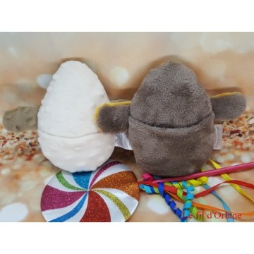 Doudou "Popop" sera installé, tourné en forme d’œuf (pour une meilleure surprise), dans un sachet, enveloppé par du papier de soie, avant d'entrer dans un carton, pour son voyage vers son futur propriétaire.