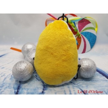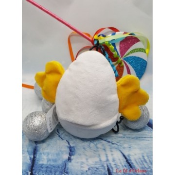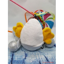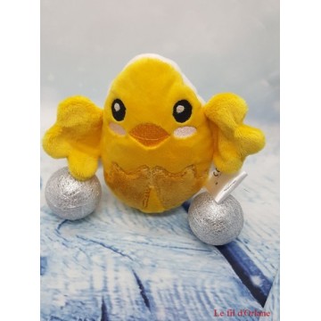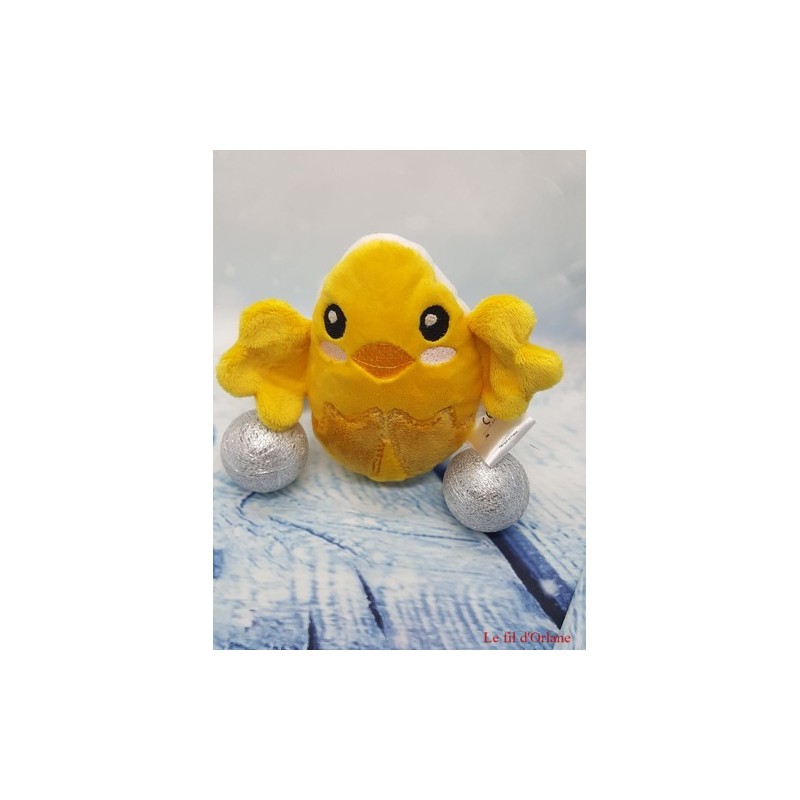 C'est un poussin, doudou "Popop", mesurant environ 16 cm avec des ailes de 7 cm x 5 cm chacune.