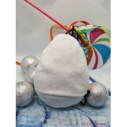 Vous pouvez choisir vos couleurs et matières de vos tissus (parmi ceux en ma possession au moment de votre commande), cependant, je vous conseille du jersey pour la matière du "retouné" (facile à étirer donc à retourner). Vous pouvez également changer la couleur de ses yeux : bleu à la place du noir, jaune au lieu du blanc... bec noir ou blanc... bref, imaginez et j'essaierai de réaliser votre projet.