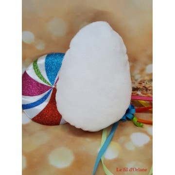 Sur le doudou "Popop" je peux y ajouter un prénom ou un mot à un bras, une oreille (ou les 2), sur la patte (si cette dernière n’a pas d’empreinte brodée) ou même au dos : il suffit de l'imaginer pour qu'il puisse exister !